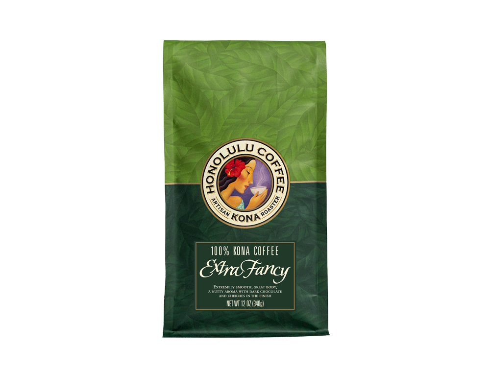 Retail Kona coffee on Honolulu Coffee cafe shelves